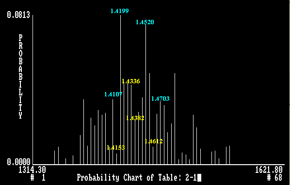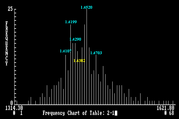 Monthly Cycle Probability Chart of Canadian Dollar The probability value measures the pull which a projected point exerts on the market. The likelihood of seeing a particular point reached in any projected period is measured by a combination of two factors: the contour of frequency chart and its probability value. Quantum Index Analysis The Quantum Index analysis is a new technical technique that I developed ten years ago. This technique is used to forecast the movement of currency rates, prices in bonds, stocks and precious metals. I provided exclusive service (Dollar/Mark, Dollar/Yen, Dollar/Swiss Franc and British Pound) to the Strategic Positioning Unit of Citibank in Hong Kong for two years (1988 - 1990). The system generates a bar chart for each of the above products. This chart indicates the ease of movement between projected chart points for a specific time frame. The system determines a projected range and number of bars to cover this range with a constant increment. The bars are arranged in ascending order along x-axis. A quantified value, frequency (y-axis), is assigned to each bar in the projected range. The difference in frequency value of two adjacent bars indicates the ease with which the market is expected to move between them. The smaller the difference, the easier the movement. The system also assigns a probability value (y-axis) to each bar. The probability value measures the pull exerted by each bar on the market. The likelihood of seeing a particular rate or price reached during any projected period is measured by a combination of two factors: the contour of the frequency chart and its probability value. The best entry or exit point is at the extreme end of the normal trading range and can be fine tuned with a weekly chart. If you are interested in subscribing my weekly analysis, please check Services for more details or send me an e-mail. Albert Cheung (Ph.D. ) E-mail: [email protected] Mirror Sites