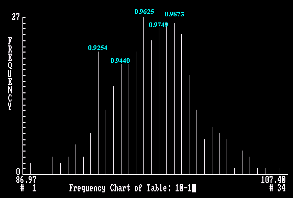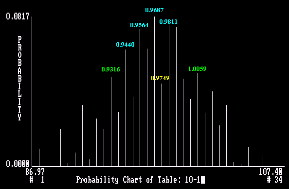 10-Day Cycle probability Chart of Euro The probability value measures the pull which a projected rate exerts on the market. The likelihood of seeing a particular rate reached during any projected period is measured by a combination of two factors: the contour of frequency chart and its probability value. Quantum Index Analysis The Quantum Index analysis is a new technical technique that I developed ten years ago. This technique is used to forecast the movement of currency rates, prices in bonds, stocks and precious metals. I provided exclusive service (Dollar/Mark, Dollar/Yen, Dollar/Swiss Franc and British Pound) to the Strategic Positioning Unit of Citibank in Hong Kong for two years (1988 - 1990). The system generates a bar chart for each of the above products. This chart indicates the ease of movement between projected chart points for a specific time frame. The system determines a projected range and number of bars to cover this range with a constant increment. The bars are arranged in ascending order along x-axis. A quantified value, frequency (y-axis), is assigned to each bar in the projected range. The difference in frequency value of two adjacent bars indicates the ease with which the market is expected to move between them. The smaller the difference, the easier the movement. The system also assigns a probability value (y-axis) to each bar. The probability value measures the pull exerted by each bar on the market. The likelihood of seeing a particular rate or price reached during any projected period is measured by a combination of two factors: the contour of the frequency chart and its probability value. The best entry or exit point is at the extreme end of the normal trading range and can be fine tuned with a weekly chart. If you are interested in subscribing my weekly analysis, please check Services for more details or send me an e-mail. Albert Cheung (Ph.D.) E-mail: [email protected]